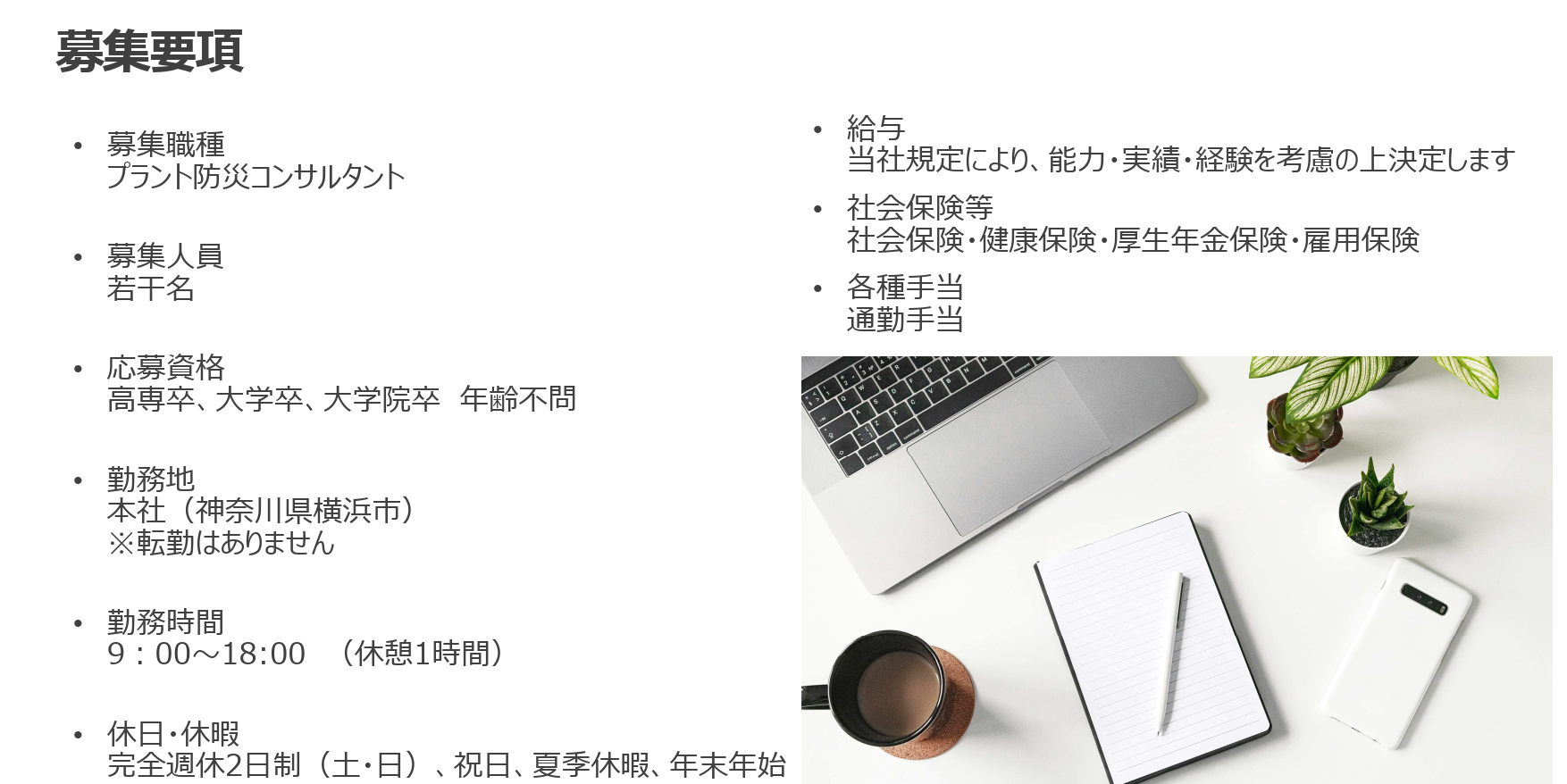 弊社は、日本で唯一,危険物を取り扱うプラント防災に特化したコンサルティング会社です。またプラントの防災システムの基本設計に豊富な経験による知見を得て、単にアドバイスするだけではなく実際的なバックグランドをベースに実効性のあるコンサルティングを実施しております。